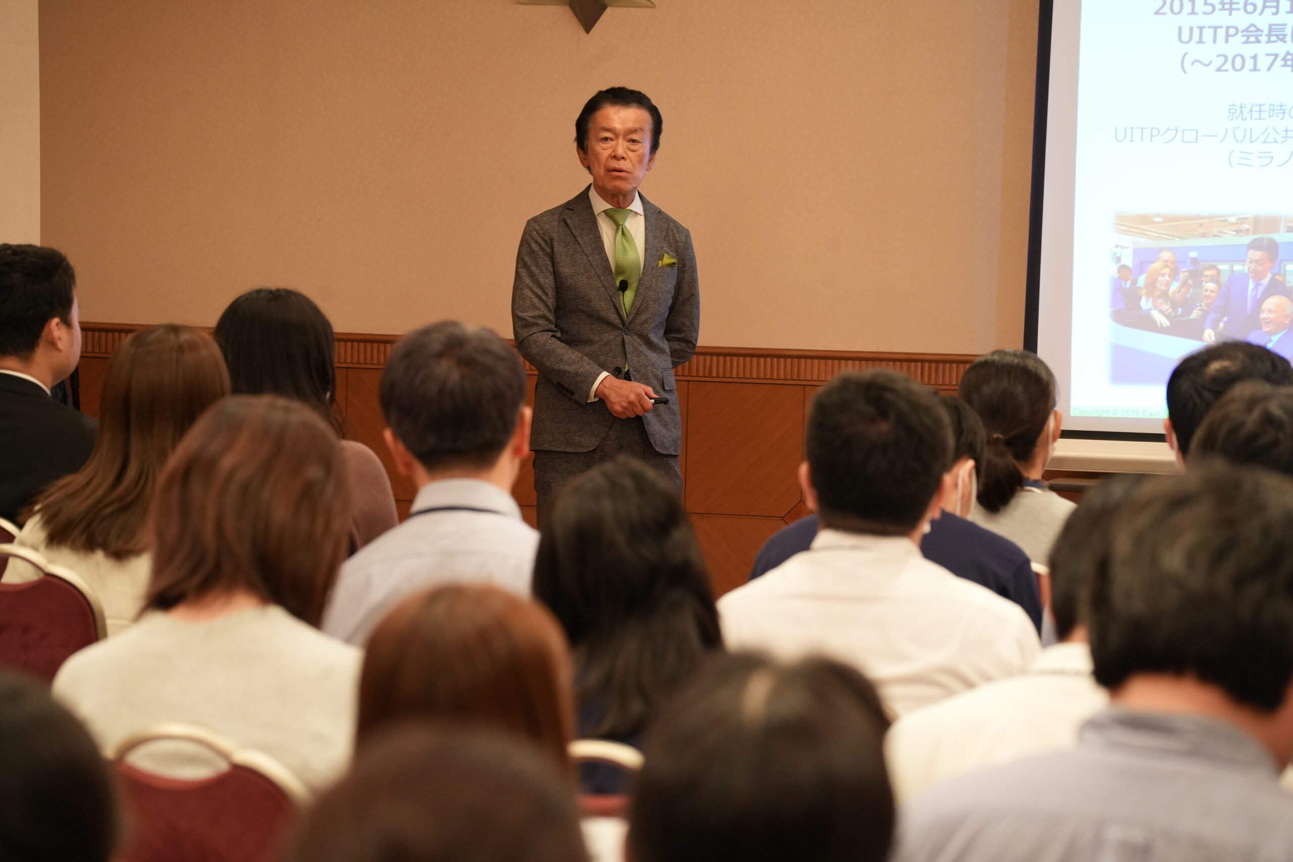 今回はゲスト講師として、小原専務理事の先輩にあたられる 小縣 方樹 様 をお招きし、特別講演を実施しました。