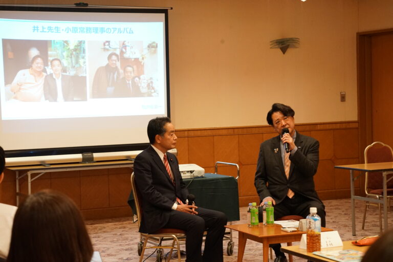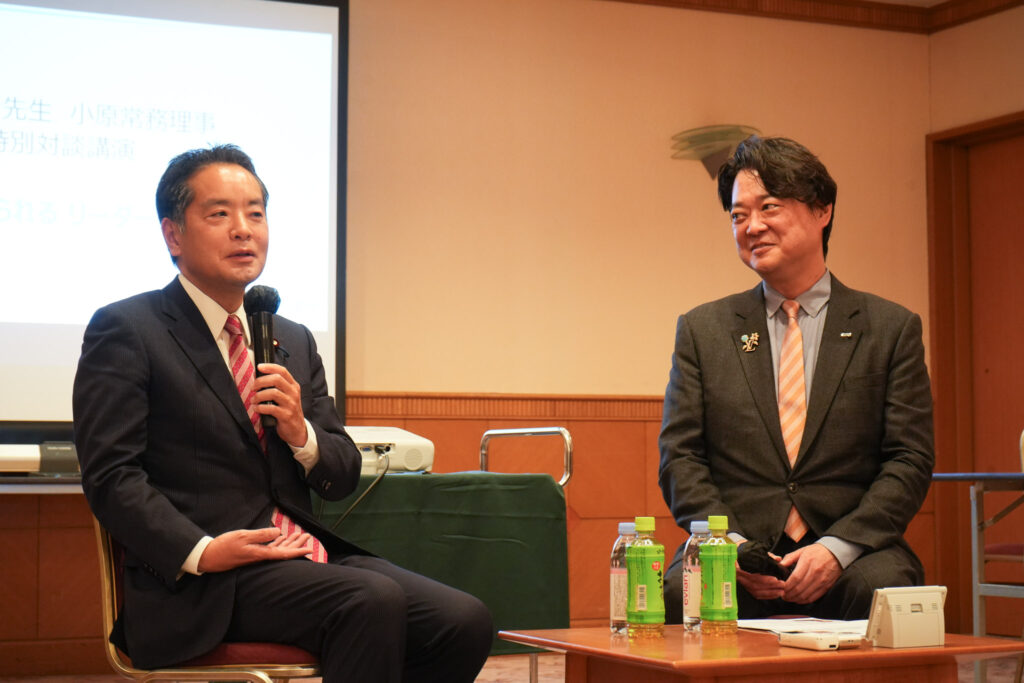 本講義のメインテーマは、井上先生と小原専務理事による対談講演「これから求められるリーダーシップとは」。